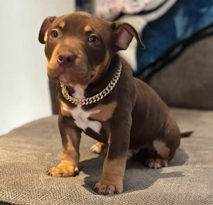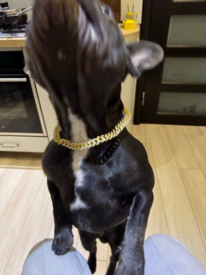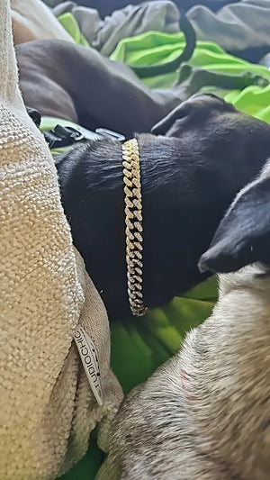 I bought this Cuban-style chain for my dog and it instantly upped his confidence on walks. It feels sturdy, sparkles in sunlight, and draws compliments from neighbors. Easy to put on and stays secure during play.